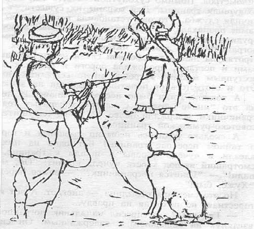 А сколько родилось небылиц смешных и горестных о тайном переходе границы! Вот одна из них. Двое влезли в чучело коровы и пошли к границе. Вдруг смотрящий из-под хвоста чучела кричит: – Ой, мы пропали! – Гонится пограничник? – замер передний. – Хуже, бык! А вот другой случай. Ночь. К границе крадется человек. Пограничник: – Стой! Кто идет? Нарушитель: – Ша, ша, что вы кричите, уже никто никуда не идет. И еще. На нарушителя границы напала собака. Он от нее, она за ним, он от нее, она за ним. Он проваливается в зловонную яму. Собака у ямы победоносно рычит. Нарушитель: – Ну что, добегалась, сука?