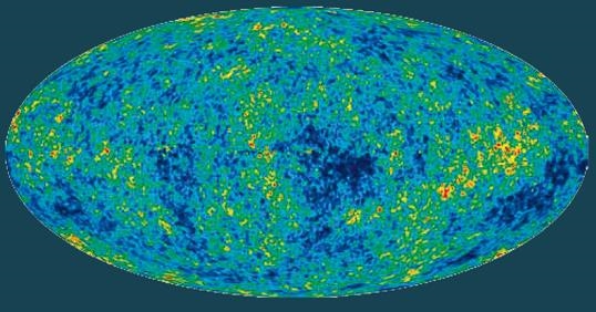 Первая «карта» Вселенной, или микроволновое реликтовое излучение, около 14 миллиардов лет назад. Карта отображает колебания температуры в разных точках Вселенной через 380 000 лет после ее рождения, которые соответствуют местам зарождения будущих галактик. С момента экспериментального подтверждения существования реликтового излучения в 1964 году оно изучается с помощью приборов, установленных на спутниках или в люльках под аэростатами. Приведенная здесь первая детальная карта построена по данным со спутника Wilkinson Microwave Anisotropy Probe