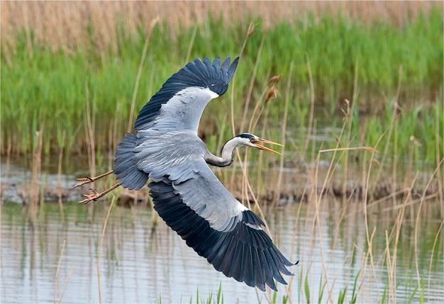 Для серой цапли (илл. 10) масса m составляет порядка 1 кг. Размах ее крыльев – около 2 м, и можно предположить, что площадь S ≈ 0,2 м2. При приблизительных значениях ρ = 1 кг/м3 и g = 10 м/с2 скорость крыла будет составлять порядка 3 взмахов в секунду, что вполне соответствует реальности между 2 и 3 взмахами в секунду в машущем полете.