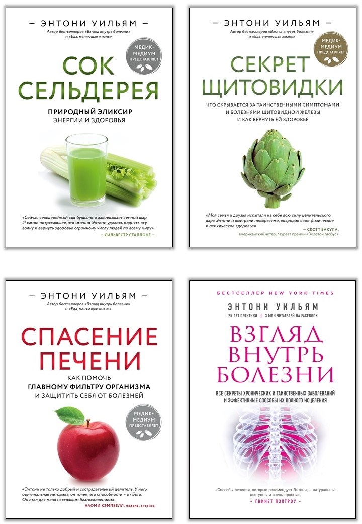 Медиум Энтони Уильям буквально «видит» состояния людей и может помочь им восстановить здоровье. Среди его пациентов – голливудские знаменитости, рок-звезды и тысячи самых обыкновенных людей. «Медик-медиум» знает, как избавиться от заболеваний – его методы просты, рациональны и доступны каждому, кто готов прислушаться к потребностям своего организма и помочь ему исцелиться.