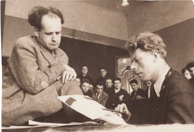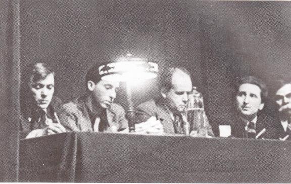 Б.П. Чирков, Г.М. Козинцев, С.М. Эйзенштейн, А.К. Крук, А.П. Чистяков на обсуждении во ВГИКе фильма «Юность Максима»