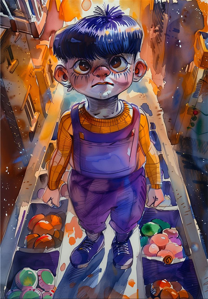 Человек шёл быстро, словно хотел скорее скрыться, но мальчик догнал его и поставил подножку. Тот неуклюже упал, и все торты рассыпались на кафельном полу.
