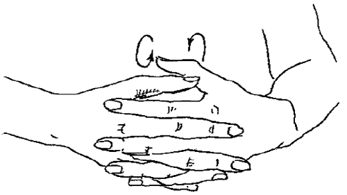Передав силу Джалы (водной стихии) всем пяти пальцам, мизинец согните и выпрямите безымянный палец. Точно так же проведите им вокруг всех пяти пальцев левой руки.