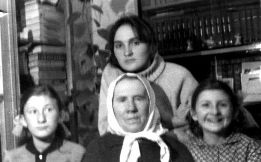 Моя бабушка Анна Ильинична, сестры Галина (слева) и Ольга (справа). А за бабушкой – я, Наталья