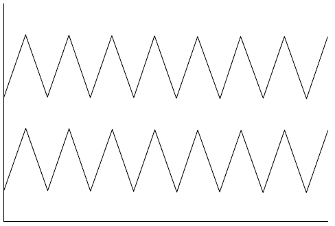 Посмотрите на рис. 1.2. На нем изображены две абсолютно коррелированные последовательности. Мы называем это положительной корреляцией.