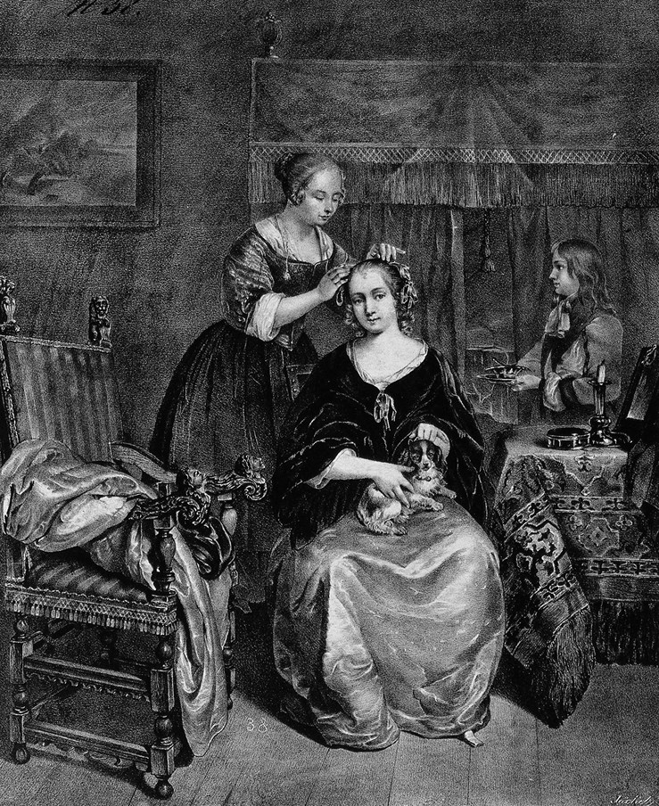 Для привлечения потенциальных работодателей некоторые предприимчивые люди, такие как Джон Макдональд, брали уроки у профессионалов, поскольку, хотя стрижка и уход за волосами в основном происходили на дому, существовали и независимые парикмахеры. Уже в XVI веке камеристки и горничные специализировались на стрижке, завивке, окрашивании и укладке женских волос. Например, Бланш Суонстед была камеристкой Анны Датской, жены короля Якова I. После смерти Анны в 1619 году Бланш обратилась к королю с просьбой о пенсии, заявив, что из‐за прислуживания покойной королеве она потеряла своих бывших клиенток и средства к существованию132. Сэмюэль Пипс сообщает нам в своих дневниках, что камеристка супруги Карла II, Екатерины Брагансской, была француженкой по имени г-жа Готье133. В 1747 году Р. Кэмпбелл в своем описании лондонских профессий охарактеризовал горничную как «премьер-министра» женской красоты – злободневный намек на относительно недавнее создание этой политической должности. Горничная «вооружает слабый пол этим опасным оружием, красивыми кудрями и очаровательными локонами: она подстригает их волосы по моде, придавая им всевозможные формы». По словам Кэмпбелла, это ремесло было «чрезвычайно прибыльным»134.
