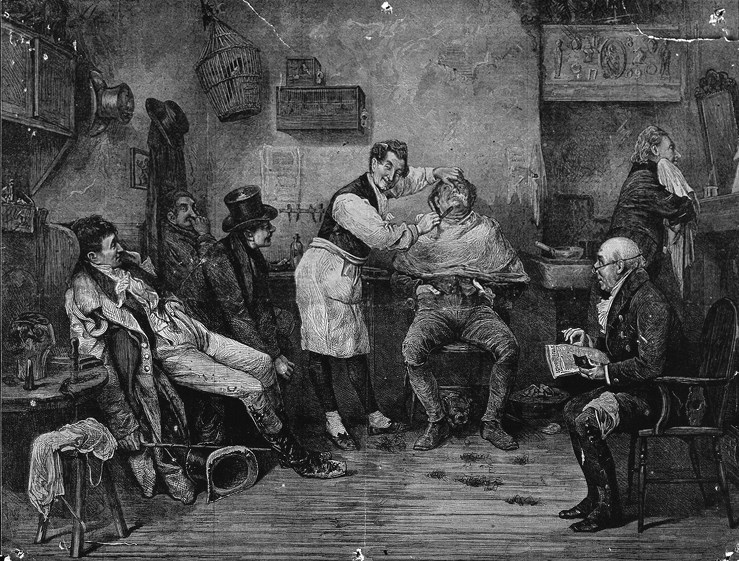 Одной из причин, по которой оказалось так сложно регулировать сферу парикмахерских услуг, была популярность цирюлен в качестве места проведения досуга (ил. 2.6). Согласно мемуарам Ричарда Райта Проктора (1816–1881), цирюльника из Солфорда, поступившего в подмастерья в 1826 году в возрасте девяти лет, для обычного работяги парикмахерская в воскресенье представляла собой «долгожданное убежище» от остальных шести дней тяжелого труда. На какое-то время «они забывали свои личные заботы» во «всепоглощающей» беседе и обмене новостями.