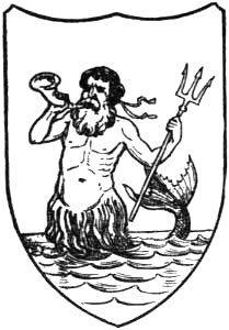 In modern heraldry such bearings are usually adopted with special allusion to actions performed at sea, or they have reference in some way to the name or designation of the bearer, and hence termed allusive or canting heraldry. Some maritime towns bear nautical devices of the fictitious kind referred to. For instance, the City of Liverpool has for supporters Neptune with his trident, and a Triton with his horn. Cambridge and Newcastle-on-Tyne have sea-horses for supporters to their city’s arms. Belfast has the sea-horse for sinister supporter and also for crest.