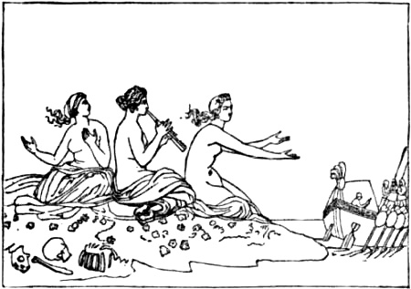 Flaxman, in his designs illustrating the “Odyssey,” represents the sirens as beautiful young women seated on the strand and singing.
