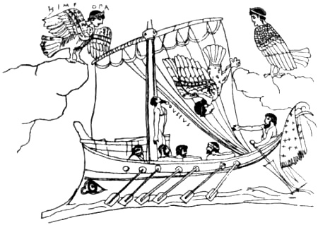 Ulysses and the Sirens. From a painting on a Greek vase.