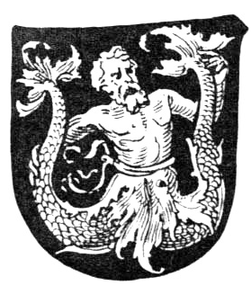 “Spring-headed hydras, and sea-shouldering whales;Great whirlpools, which all fishes make to flee;Bright scolopendras arm’d with silver scales;Mighty monoceroses with unmeasured tails;The dreadful fish that hath deserved the nameOf death, and like him looks in dreadful hue;The grisly wasserman, that makes his gameThe flying ships with swiftness to pursue;The horrible sea-satyr that doth shewHis fearful face in time of greatest storm;Huge Ziffius, whom mariners eschewNo less than rocks, as travellers inform;And greedy rose-marines with visages deform;All these, and thousand thousand many moreAnd more deformed monsters, thousandfold.” Faerie Queen, Book ii. cant. xii.The early heralds took little account of these dreadful creatures—more easily imagined by fearful mariners or by poets than depicted by artists from their vague descriptions. The most imaginative of the tribe rarely ventured beyond such representations of marine monsters as appealed strongly and clearly to the universal sense of mankind—compounds of marine and land animals—either from a belief in the existence of such creatures, or because they used them as emblems or types of qualities, combining for this purpose the attributes of certain inhabitants of the sea with those of the land or of the air to form the appropriate symbol.