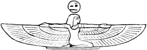Hawk-headed and winged figure, emblem of Osiris, which, having of all birds the most piercing eye and the most rapid flight, serves to express the divine intelligence and activity.