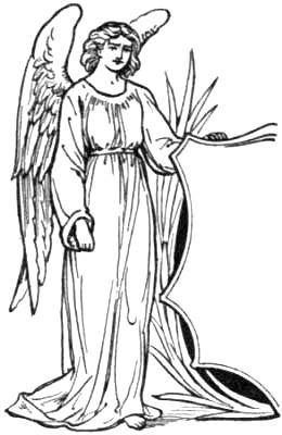 The idea of adding wings to the human form has existed from remote antiquity, and for the earliest suggestion of celestial beings of the winged human type we must look to the art works of Egypt and Assyria. In Egyptian art, Neith, the goddess of the heavens, was sometimes represented with wings, and in the marbles of Nineveh we find human figures displaying four wings.3 In classic art wings are given to certain divinities and genii. The Jews probably borrowed the idea from the Egyptians, and the early Christians adopted—in this as in many other instances—existing ideas in their symbolical art to express the attribute of swiftness and power, and the sanction of the practice doubtless fixed it for acceptance through all future epochs of Christian Art.