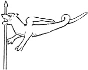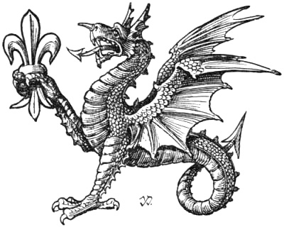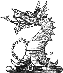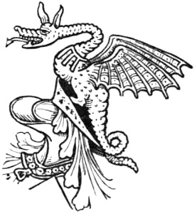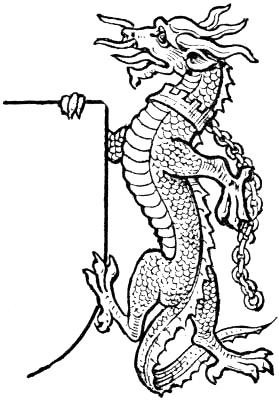 The dragon of our modern books of heraldry is a miserable impostor, a degenerate representative of those “dragons of the prime, that tore each other in their slime.” It is curious to note in this the gradual degradation from the magnificent saurian type of the best period of heraldic art to a form not far removed from that given to an ordinary four-legged creature covered with plates and scales. His legs are longer and weaker, his mighty caudal appendage, shrunk to insignificant and useless proportion, and most unlike his ancient prototype the crocodile. This error of our modern heraldic artists displays remarkable lack of proper knowledge of this mythical creature and his attributes. Such a splendid creation of the fancy should not be represented in such a weak and meaningless form by the hands of twentieth-century artists. The ancient form is infinitely to be preferred as a work of symbolic art.
