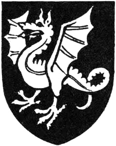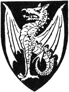 The mythical dragon is represented in heraldic art with the huge body of the reptile saurian type covered with impenetrable mail of plates and scales, a row of formidable spines extending from his head to his tail, which ends in a great and deadly sting; his enormous jaws, gaping and bristling with hideous fangs, belch forth sparks and flame; his round luminous eyes seem to shoot gleaming fire; from his nose issues a dreadful spike. He is furnished with sharp-pointed ears and a forked tongue, four sturdy legs terminating in eagle’s feet strongly webbed, clawing and clutching at his prey. Great leathern bat-like wings armed with sharp hook’s points, complete his equipment. The wings are always “endorsed,” that is, elevated and back to back.