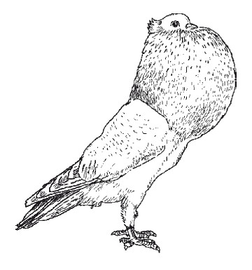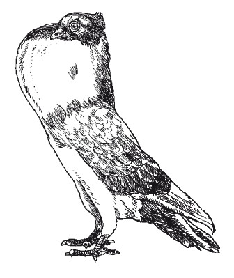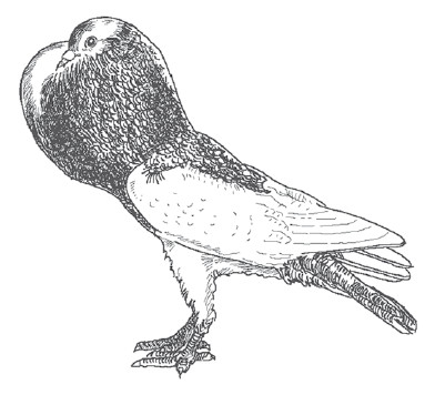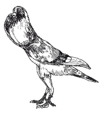 Это изящный зобатый голубь, унаследовавший признаки обоих родителей: от отца – форму и окраску оперения, от матери – величину и грациозность.