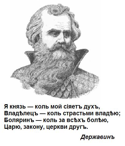 Имя поэта принято писать сейчас Гавриил Державин. А напрасно. Зачем перелагать на нерусский лад имена старинные русские? Гаврила имя идет от старорусского «говорила»: поэт, глас народа, говорун (спикер), трибун. Вот этим-то всем и был по жизни наш Гаврила Державин!