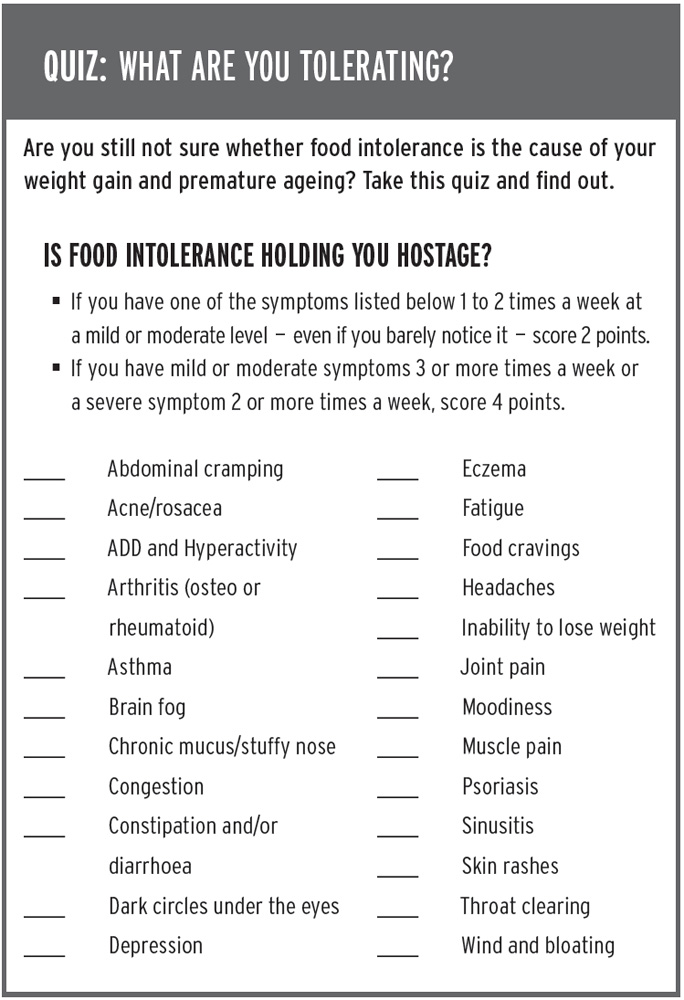 Now, at this point, you might be thinking, But I don’t have any of those symptoms, and I feel fine after I eat. If that’s your response, terrific! You probably don’t have any food allergies. Most people don’t. But most people do have food intolerance, so let’s take a closer look at that.