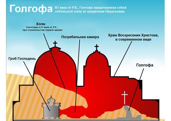 Итак воскресенье. Раннее утро. Только-только светает. «В первый же день недели [тогда – этим днем считалось воскресенье] Мария Магдалина приходит ко гробу рано, когда было ещё темно (в мае в Иерусалиме – это около 5-ти утра), и видит, что камень отвален от гроба». Даже не зная, что последует за этим, первое, что всем нам приходит в голову – Тело Иисуса ночью выкрали. И эта направленность мысли в сторону похищения очевидна. Вся субботняя суета вокруг гроба настраивает нас именно на такую мысль. Но как же такое может быть!!! Мы, в отличие от Марии Магдалины, из текста Евангелий знаем какие экстраординарные меры были предприняты накануне как раз для того, чтобы именно этого и не случилось. Тут, кстати самое место поподробнее разобраться что это были за меры. Это, как мы знаем, выставленная у входа римская стража, и это откатной камень, закрывающий вход в склеп. Этот склеп, кстати, представлял собой вытянутую камеру, прорубленную вглубь Лысой горы. Святая Елена по заданию своего сына, императора Константина, в 326 году провела обширные раскопки на Голгофе и откопала там гроб Господен, над которым сначала воздвигли небольшую часовню, которая в свою очередь оказалась впоследствии внутри огромного Храма Воскресения Христова. Елена нашла там даже крест с надписью «Царь Иудейский». Поэтому сейчас ясно, что войти во гроб можно было только через основной и единственный его вход, а выйти оттуда, как вы сами понимаете, – только в мир иной…