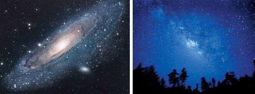 В середине этого процесса материальная Вселенная пестрит разнообразием своих проявлений. Огромные галактики с их неисчислимым количеством звезд и планет наполнили бесконечные просторы материальной Вселенной. Млечный Путь, который можно хорошо разглядеть в безлунную ночь на небе, является поперечным разрезом одной из таких галактик, на периферии которой приютилась наша Солнечная система и зародившаяся в ней жизнь.