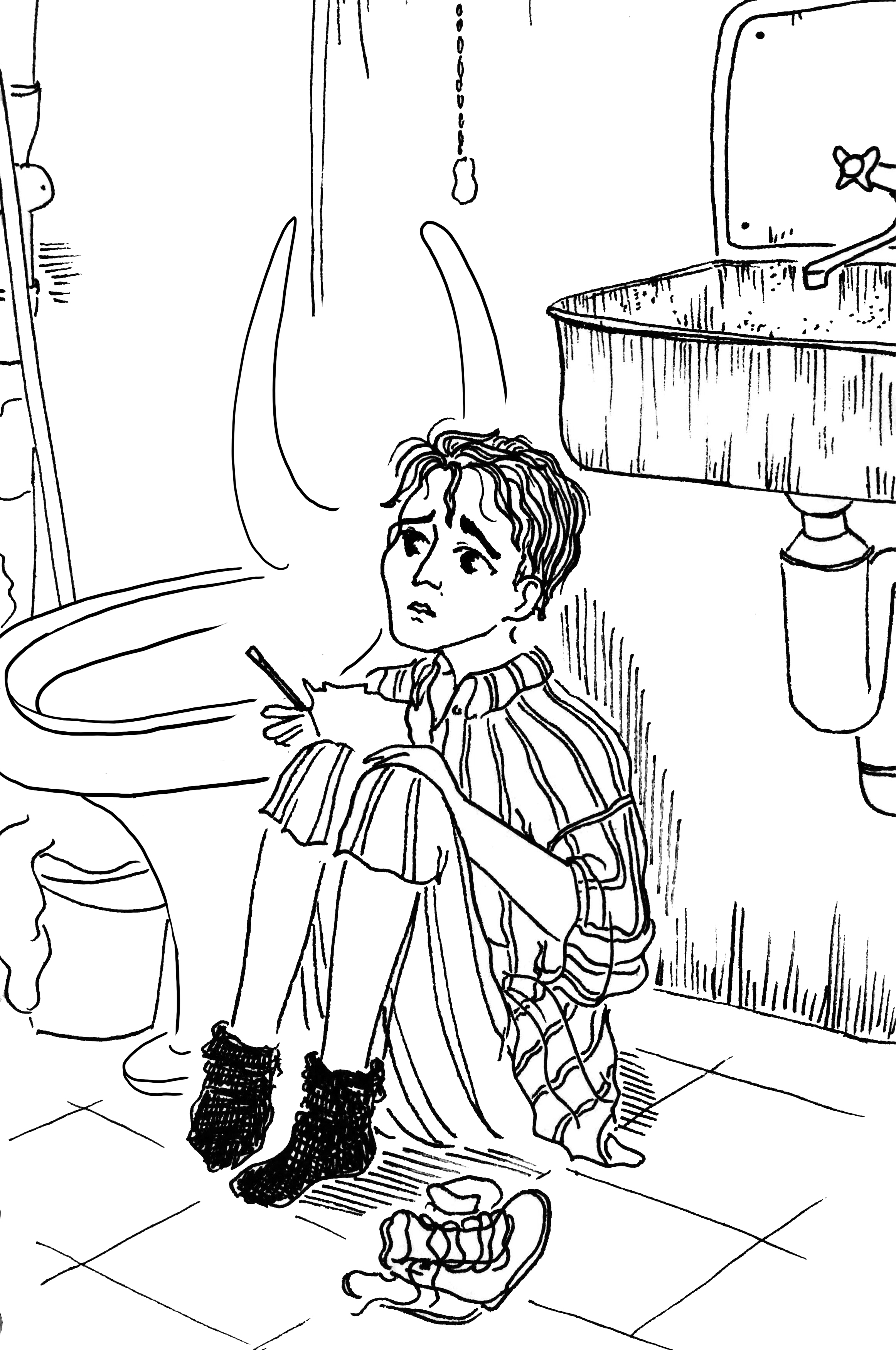 Мальчик осторожно крался вдоль тёмного коридора, держа в руках грубые стоптанные башмаки. Подошёл к двери в ванную, оглянулся – вдруг его кто-то увидит, – проскользнул внутрь и, забившись между умывальником и унитазом, начал торопливо писать остро отточенным карандашом.