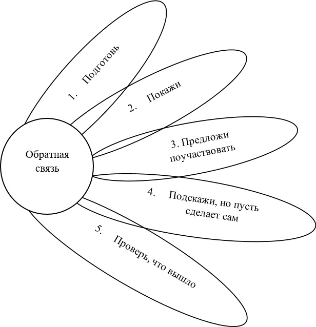 Второй лепесток – покажиКогда ученик понял, что его ждёт, зачем ему это нужно и познакомился с наставником, настало время показать ему непосредственно работу. Что ему предстоит делать или другими словами – рабочий процесс. В зависимости от должности, процесс может быть простым или сложным. Тут важно понимать какой процесс у вас. Если простой – вы показываете всю работу на собственном примере, если сложный – дробите его на этапы и показываете первый этап. Здесь важно не перегрузить оперативную (кратковременную) память ученика. Американский психолог Джордж Миллер исследовал размер оперативной памяти человека и сделал вывод, что её размер равен 7+-2 элемента. Это значит, что, если вы покажете больше 9 действий за раз, высока вероятность того, что ученик запомнит только часть. Есть ли смысл напрягаться, тратить ваше и ученика время, чтобы потом показывать снова и снова, зная, что всё это не удержится в памяти ни на минуту. Помните – главная цель этого шага, чтобы ученик увидел действительно важные моменты вашей работы и в дальнейшем смог их повторить. Если он не запомнил, значит не повторит. Шаг «покажи» кажется простым, но есть много нюансов, которые нужно учитывать во время демонстрации. Мы о них поговорим в главе 5. Вообще последующие главы будут посвящены подробному описанию каждого шага. По главе на шаг. Разумеется, когда вы покажете ученику рабочий процесс, вам нужно будет получить обратную связь от него о том, что он увидел. Иначе нет смысла продолжать.