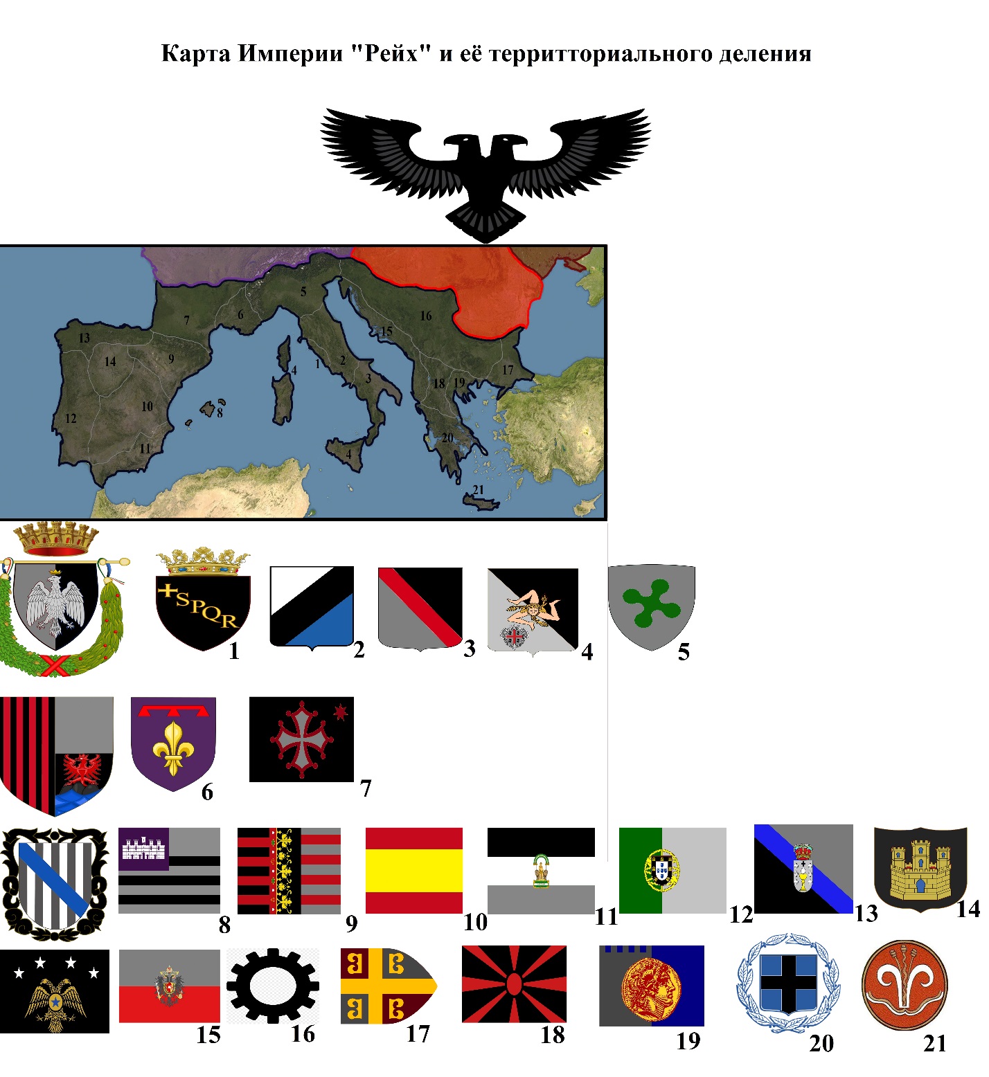 Рис. 1 Карта «Империи Рейх» с территориальным составом.