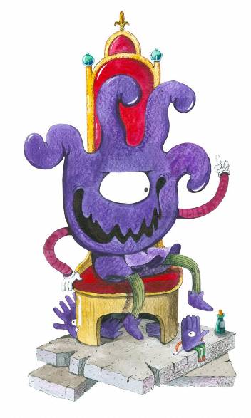 Промокашка подошел к валявшейся на полу королевской мантии, поднял корону, нахлобучил ее на свою уродливую голову и начал копошиться в королевской мантии.