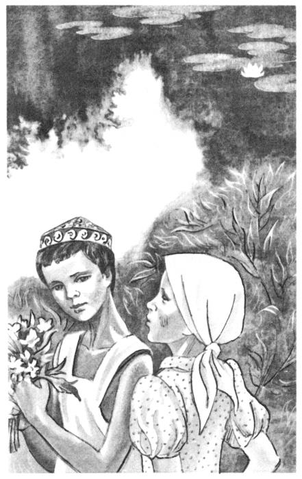 Так ее увидел Кеша в это мгновение и, обмирая, смотрел на глиняную обожженность ее острых плеч, на смуглую ее щеку и всем своим существом чувствовал, как она красива теперь и как хорошо, что она живет в интернате и, наверное, еще долго будет жить, потому что война, и как странно теперь знать, что именно с ней и совсем еще недавно ходили они, потеряв дорогу, по лугам, с ней говорил он и слушал ее… И все это казалось ему теперь, когда вот уже чуть ли не месяц они избегали друг друга, какой-то доброй и заманчивой, очень хорошей неправдой, так как все тогда было просто и ясно, а теперь он боялся ее и не смел подумать, чтобы так же, как раньше, встретиться с ней и хотя бы сказать ей «здравствуй». Теперь это было почти невозможно. Теперь он мог лишь исподтишка смотреть на нее и вспоминать с удивлением и восторгом… Так же вот, как и сейчас, в ивовых зарослях.