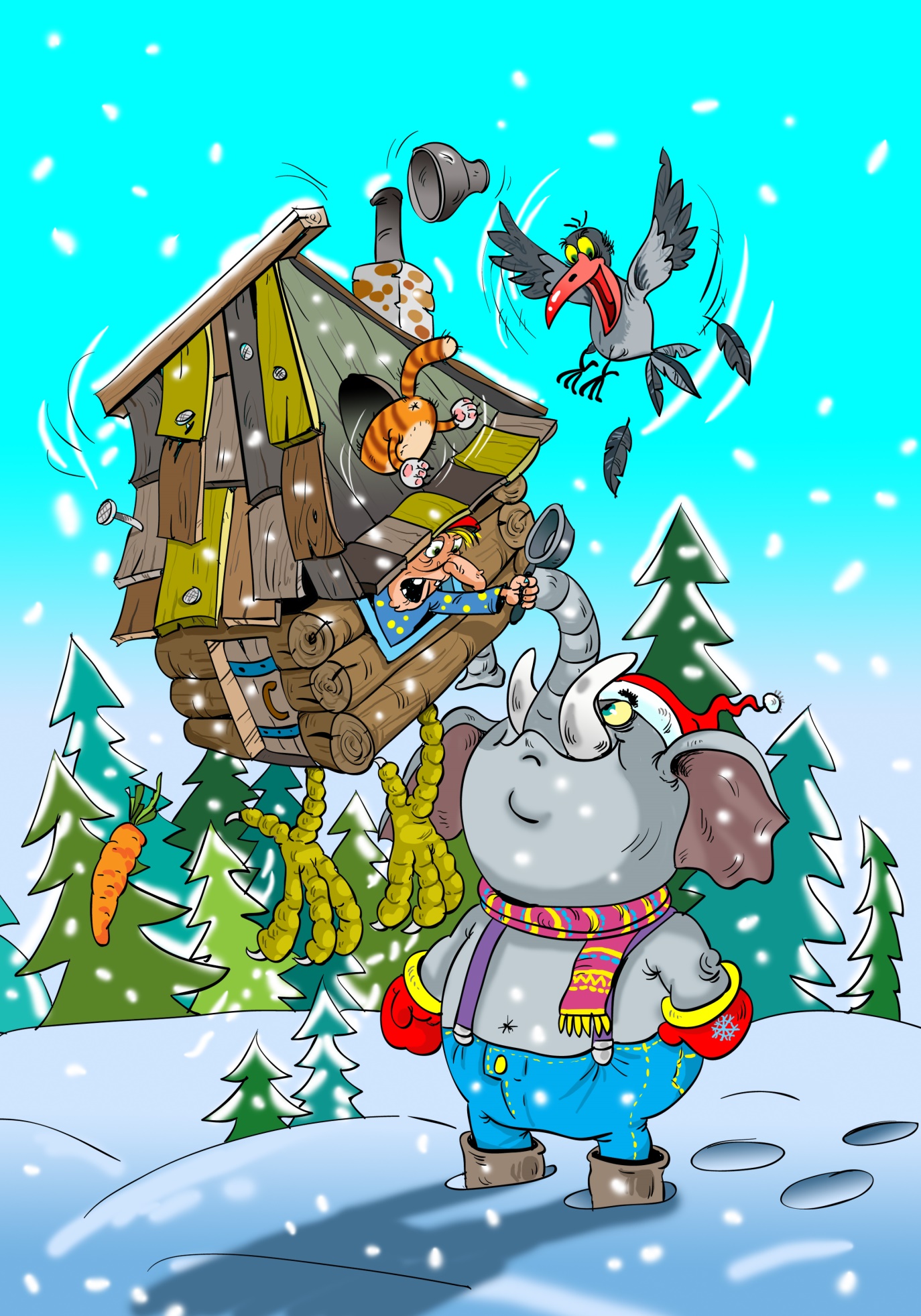 Но, к счастью, мимо избушки проходил слон. Он приезжал на Новый год к своему другу – медведю. И как раз в нужный момент оказался поблизости.