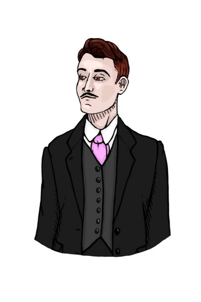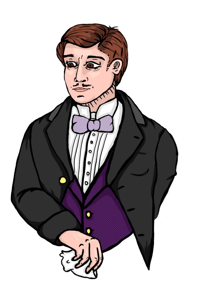 Довольно посредственный человек, весёлый, но скупой. Одет в коричневый костюм.
