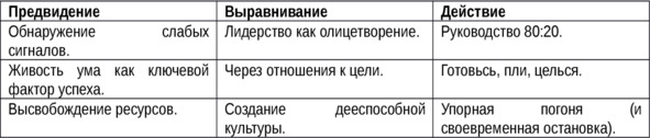 Другими словами, само по себе предвидение и выравнивание ничего не стоят без соответствующего и своевременного действия. Именно действия определяют победителя и проигравшего. Под действием мы понимаем создание того, что важно для бизнеса, и настойчивость в вопросах достижения результата.