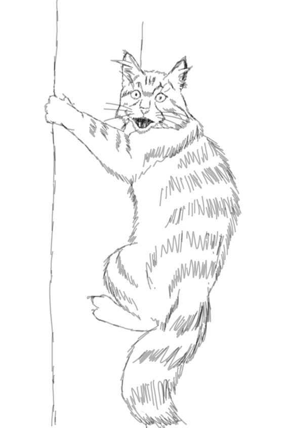 «Кошка! Слезай! Слезай, кошка!» – вопил он, подпрыгивая внизу.