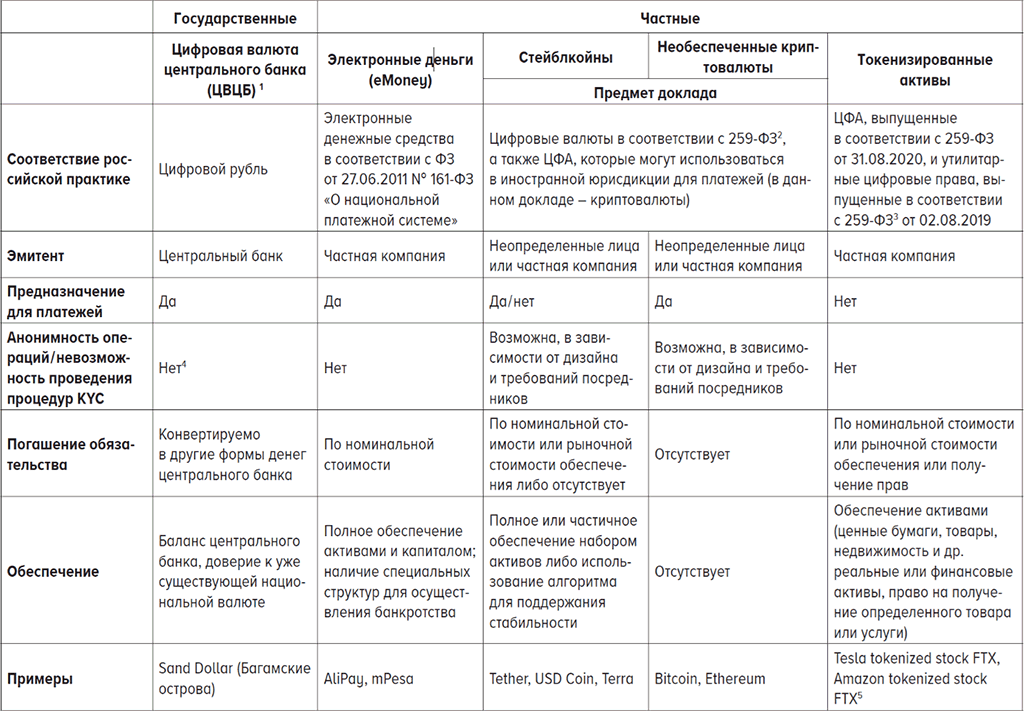 «Предметом доклада являются криптовалюты (необеспеченные криптовалюты и стейблкойны) – цифровые валюты в соответствии с российским законодательством[35], а также цифровые финансовые активы, которые могут использоваться в иностранной юрисдикции для платежей (денежные суррогаты).