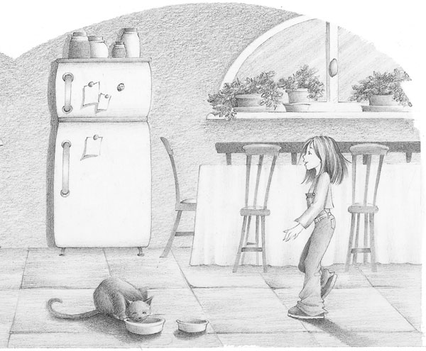 Было действительно поздно! Люба наверняка сердится: Нина пропустила обед. Прежде чем покинуть лабораторию, она вернула все на свои места и оставила страничку с алфавитом рядом с Книгой. Закрыв дверь, девочка побежала на кухню, где няня кормила кота и пса.