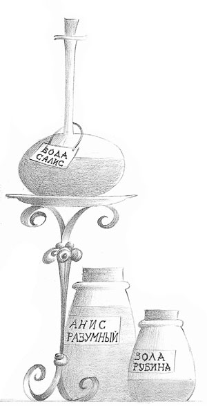 Она поискала Золу Рубина – тончайшую пудру, раскрепощающую речь, а также Анис Разумный, такой же по субстанции, придающий словам искренность. Она всыпала в белую плошку четыре грамма первого и восемь граммов второго порошка и смешивала их ровно двадцать секунд. Затем высыпала смесь в тигель, залила водой Салис, которая упрочивает верность, и кипятила в течение одной минуты и четырех секунд. Получилась ароматная жидкость красного цвета. Нина осторожно перелила ее в стеклянную бутылочку, которую, чтобы та не испарялась, заткнула сахаром Сертис. Затем взболтала содержимое, покачав бутылочку сначала влево семь раз, потом вправо шесть раз, под магическое заклинание: «Лгун упадет, если соврет. Дружба будет крепкой и достойной того, чтобы ею дорожить, если пьющий не выплюнет этот горький напиток!»