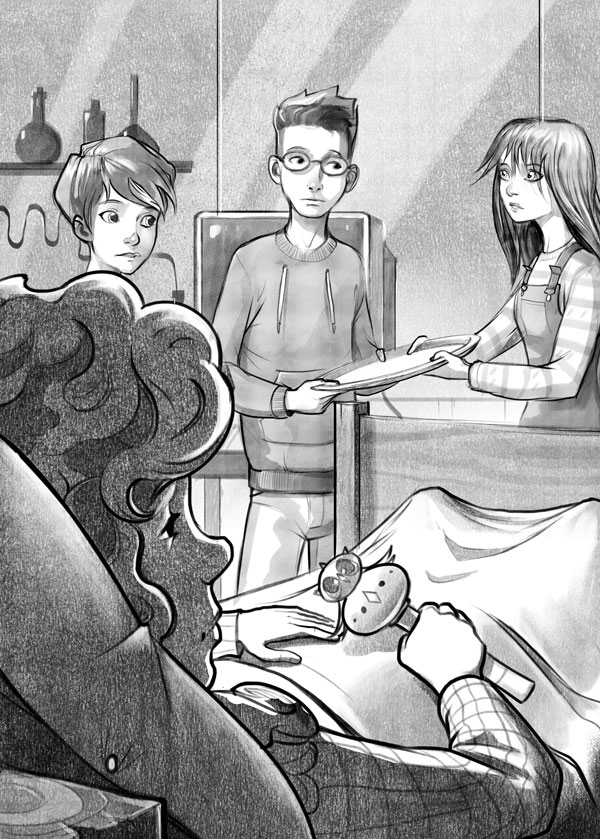 Бледно-голубой свет Акуэо Профундис ледяным лезвием полоснул по глазам Рокси. Девочка тяжело дышала. С трудом приподняв веки, она как сквозь туман увидела лица своих друзей, которые стояли в двух шагах от нее. Рокси слышала их голоса, но не понимала, о чем они разговаривают. В голове шумело от слабости. Сделав усилие, она проглотила слюну, наполнявшую рот, и с удовольствием ощутила приятный вкус Мрака Разгоняющего – эликсира, которым напоил ее Фило Морганте с помощью Бокала Вибрирующего. Подвигала плечами: боль в спине, кажется, прошла. Но вот пошевелить ногами у нее не получилось, сколько бы она ни пыталась. Почувствовала в руке свой Талдом и прижала его к груди: магический жезл Шестой Луны был единственным алхимическим инструментом, с которым она не рассталась бы даже в самом беспомощном состоянии. Страх грыз ее душу: она очень боялась, что не выкарабкается.