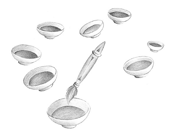Девочка обернулась и увидела, что над магической Книгой в воздухе покачиваются четырнадцать плошек, в каждой из которых своя краска. Нина дотянулась до плошки с красной краской и произнесла ее название на языке Шестой Луны:
