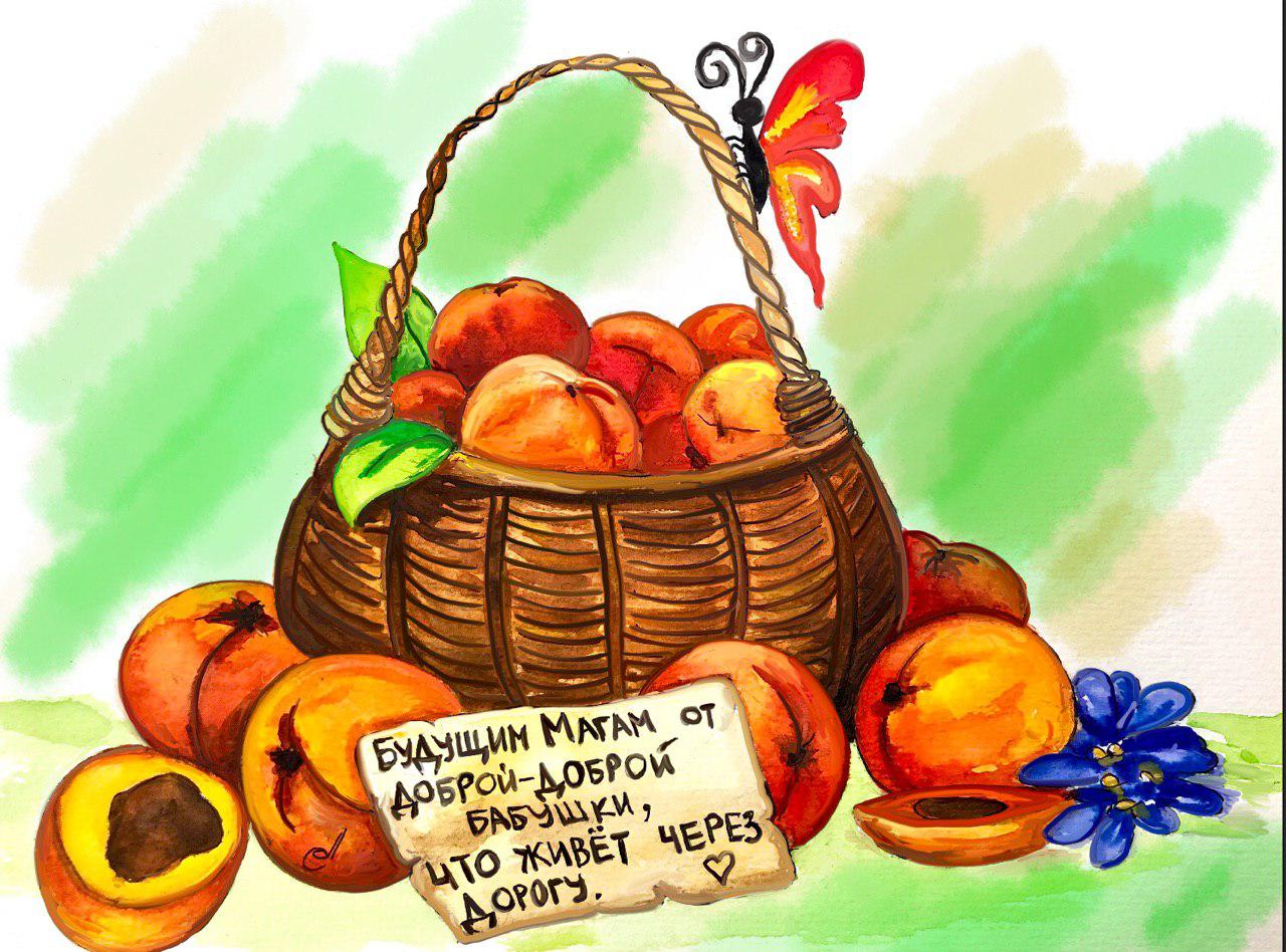 На столе ребят ждал невероятный сюрприз – огромная корзина самых больших, сладких и сочных персиков в деревне и записка: «Будущим Магам, от доброй-доброй бабушки, что живёт через дорогу»…