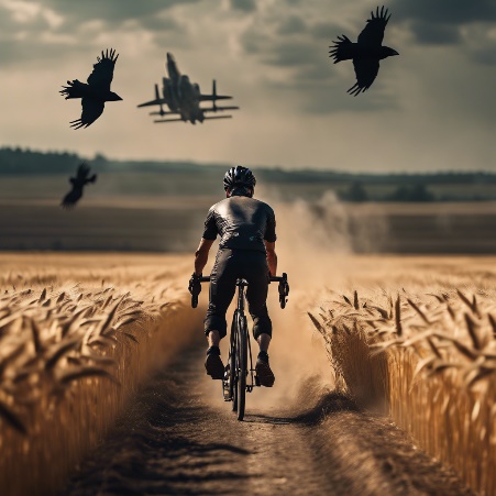 Мэт увидел в небе, бой истребителей. А на море несколько крупных авианосцев в огне. Что черт возьми происходит? Задался вопросом продолжая усиленно крутить педали. Едущая впереди группа, побросав велосипеды кинулись врассыпную, но не Мэт, только не он. Переключив передачу, он намеренно с пылающими глазами, налитыми кровью, стремился пересечь финишную черту. Да хоть апокалипсис, хоть врата ада раскроются, его не остановит. Вот он финиш осталось 50 метров, как вдруг, рядом с ним на дом падают обломки истребителя и взрывом с огнём накрывает Мэта.