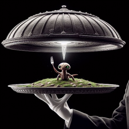 В ее то расцвете сил, уж все 40 годочков за спиною болтались, а точнее чуть пониже спины то. Но не тут-то было, – Черти одолели!!! Визжала она, до смерти напугав гуманоида и тетю Клаву. Собрались все вокруг сарая и давай планы вслух думать, как его выманить. За совет, позвать его словами куть куть куть, Илья свинопас получил по уху. Митрофан призвал всех, вооружится, так как это, по его мнению, был шпион мутант проклятого запада. В итоге конюх Кузьма и его напарник, вытянув короткую соломинку, проникли на чердак и скрутили инопланетного гада. Курица Маруси осталась цела, как и сама Маруся, к всеобщему сожалению. Летающую тарелку пришельца, откатили за сеновал. Инженер Толик, пытается вскрыть ее уже вторые сутки, из результатов только погнутые грабли и два сломанных топора.