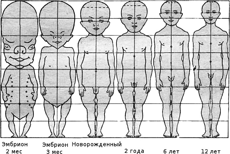 Рис. 30. Процесс становления пропорций тела у ребенка