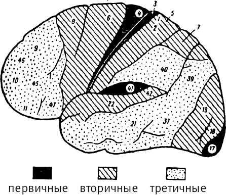 Представления о дифференциации коры головного мозга на три основных, различных по функциональной иерархии вида полей: первичные, вторичные и третичные – являются чрезвычайно важными для понимания того, как организована психика человека в целом.