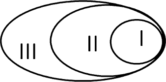 Выделяются вторичные поля слуховой, тактильной и зрительной коры, а в переднем – премоторной. Функционально все три вида полей коры соотносятся между сбой вертикально: функции первичных, над ними надстраиваются функции вторичных, а над вторичными – третичных. Однако анатомически они располагаются не друг над другом, а по горизонтали: первичные поля (I) близко к ядру зон, вторичные (II) – в ее срединных отделах, а третичные (III) – на периферии (рис. 37).