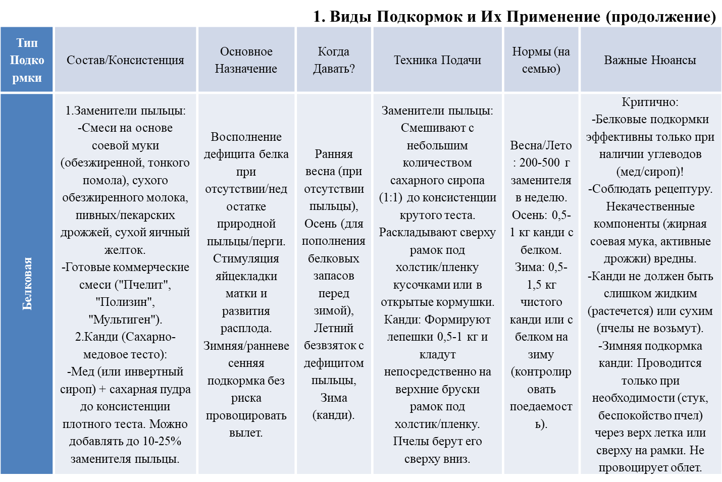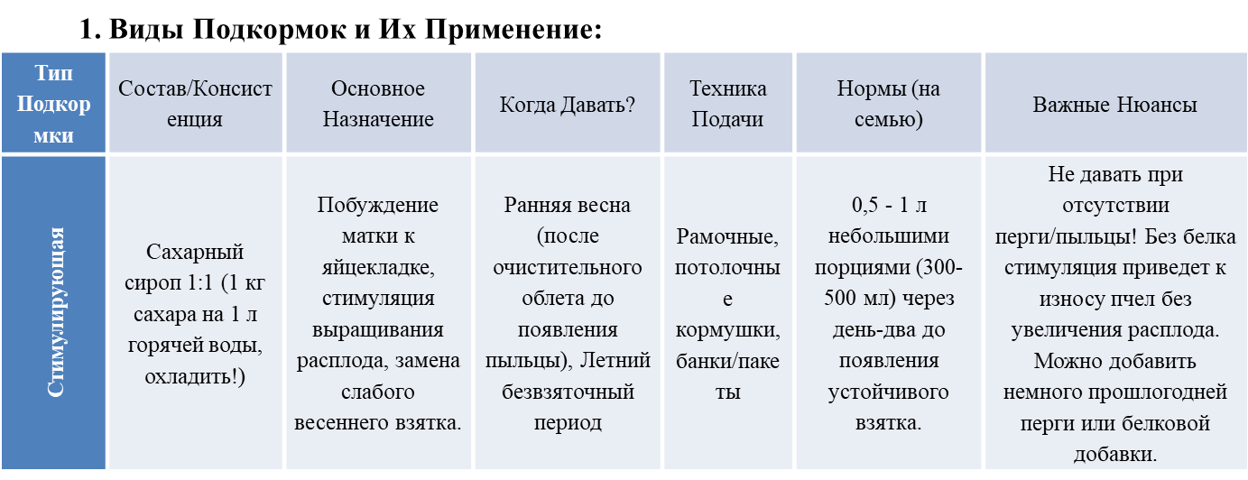 Искусственная подкормка – необходимая мера поддержки семьи в периоды отсутствия или недостатка природных источников нектара и пыльцы. Цели подкормки: