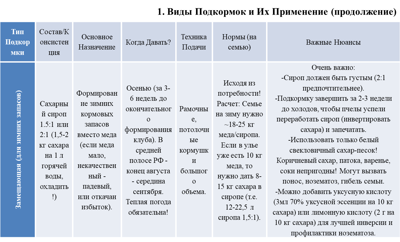 Сроки: Закончить за 2-3 недели до устойчивого похолодания! (Обычно до 5-10 октября в средней полосе). Пчелы должны успеть переработать и запечатать сироп. Канди можно дать позже (начало ноября).