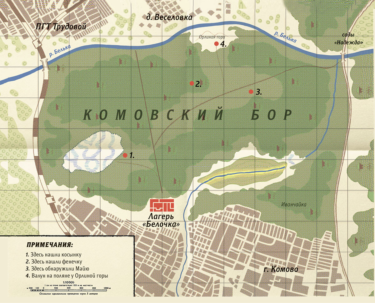 Лишь Семен Ильич с группой вожатых прочесывал березняк у западной границы лагеря, куда старшие отряды иногда убегали покурить и поиграть в карты. Вся территория «Белочки» уже была осмотрена: зашли в каждый корпус, осмотрели каждое помещение, заглянули во все щели – в подвалы, на чердаки, в кусты, в заброшенные строения – и даже проверили мусорные баки на заднем дворе столовой. Леночка же пробежала по лагерю и опросила народонаселение «Белочки». Вернувшись, она сообщила следующее.