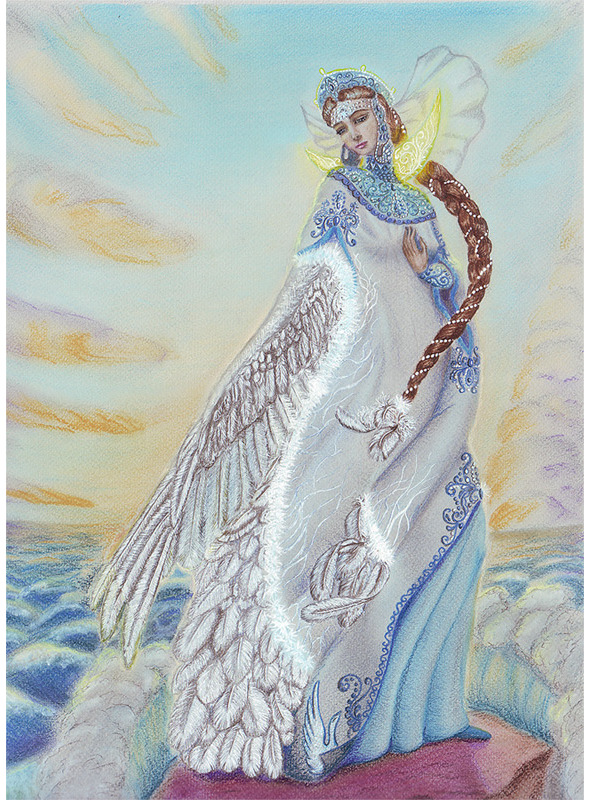 Как мне близки эти строчки —С первой до последней точки!Где-то есть такой место,Где лежит моя невеста,В забытьи свой лик тая, —Счастье, жизнь, весна моя!Светлый сказочный конец,Странствий радостный венец,Сладку боль в душе рождаетИ надежде угождает…21 февраля 1994 года…………………….Князь у синя моря ходит;С синя моря глаз не сводит;Глядь – поверх текучих водЛебедь белая плывёт.«Здравствуй, князь ты мой прекрасный!Что ж ты тих, как день ненастный?Опечалился чему?» —Говорит она ему.Князь Гвидон ей отвечает:«Грусть-тоска меня снедает;Люди женятся, гляжу,Не женат лишь я хожу».– «А кого же на приметеТы имеешь?“ – „Да на свете,Говорят, царевна есть,Что не можно глаз отвесть.Днём свет Божий затмевает,Ночью землю освещает —Месяц под косой блестит,А во лбу звезда горит.А сама-то величава,Выступает, будто пава;Сладку речь-то говорит,Будто реченька журчит.Только, полно, правда ль это?»Князь со страхом ждёт ответа.Лебедь белая молчитИ, подумав, говорит:«Да! Такая есть девица.Но жена не рукавица:С белой ручки не стряхнёшьДа за пояс не заткнёшь.Услужу тебе советом —Слушай: обо всём об этомПораздумай ты путём,Не раскаяться б потом».Князь пред нею стал божиться,Что пора ему жениться,Что об этом обо всёмПередумал он путём;Что готов душою страстнойЗа царевною прекраснойОн пешком идти отсельХоть за тридевять земель.Лебедь тут, вздохнув глубоко,Молвила: «Зачем далёко?Знай, близка судьба твоя,Ведь царевна эта – я».Тут она, взмахнув крылами,Полетела над волнамиИ на берег с высотыОпустилася в кусты,Встрепенулась, отряхнуласьИ царевной обернулась:Месяц под косой блестит,А во лбу звезда горит…А.С.Пушкин «Сказка о царе Салтане, о сыне его славном и могучем богатыре князе Гвидоне Салтановиче и о прекрасной царевне Лебеди». 1831 год