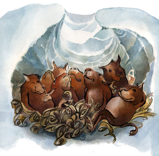 – Вот и решили перезимовать здесь! – пискнула самая крошечная. – Нашли сугроб подходящий, свили гнёздышко, опилок принесли из конюшни. Зимуем.