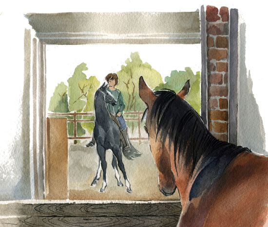 – Ма-а-а-рик! У меня для тебя сюрприз! – раздался громкий голос Зануды сразу после завтрака. Марик даже подпрыгнул от неожиданности – неужели он повзрослел за одну ночь и тоже получит седло? Одним прыжком очутившись у стенки денника, он выглянул в проход. Перед жеребёнком возникла сияющая, взбудораженная Зануда. Без седла. Разочарованно вздохнув, Марик уткнулся в сено.